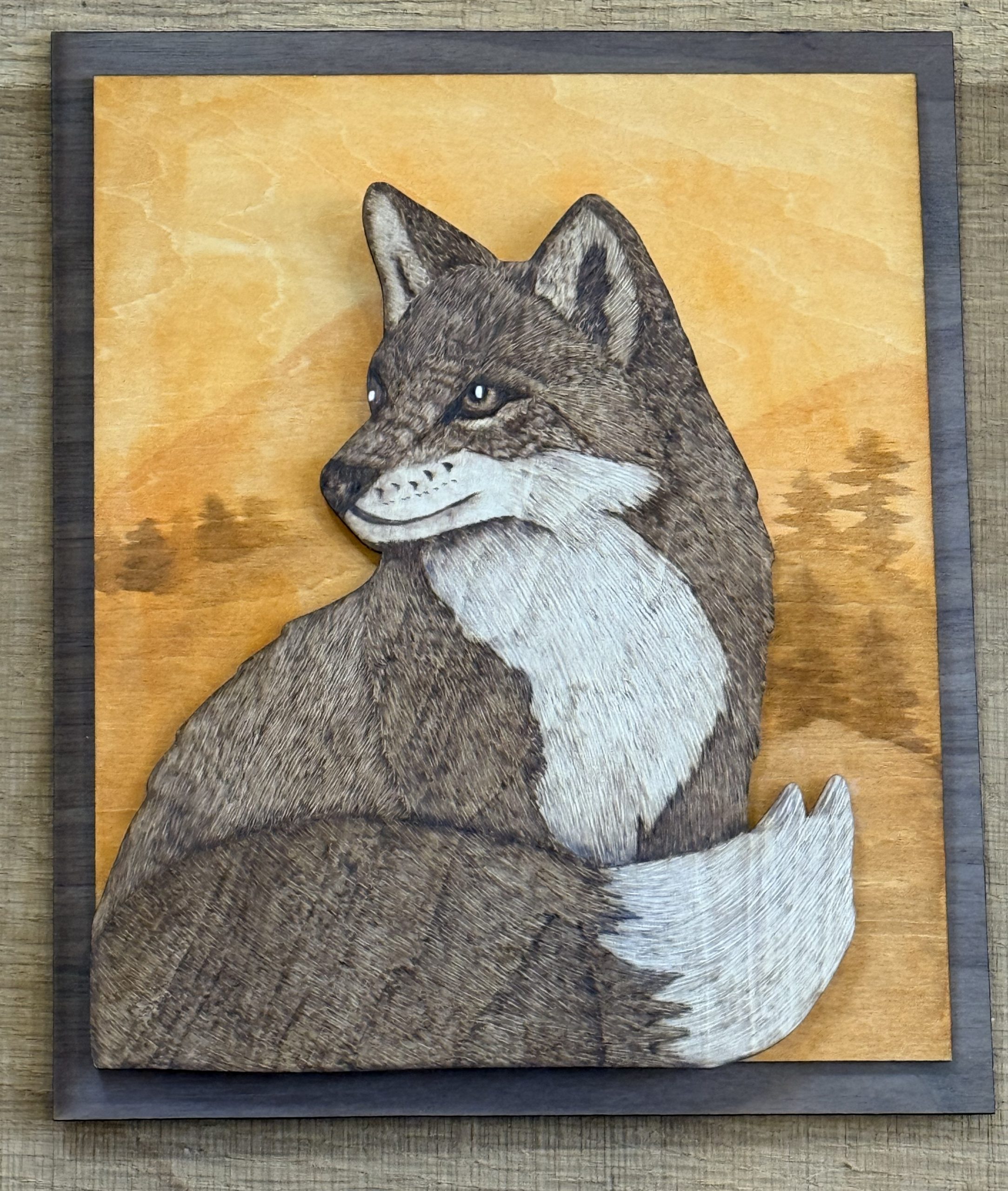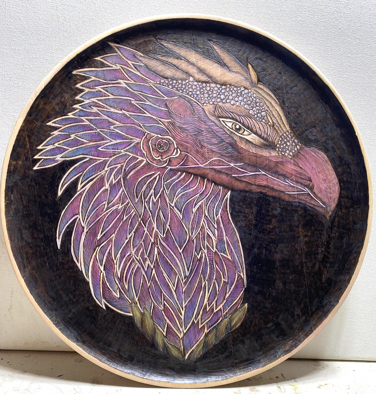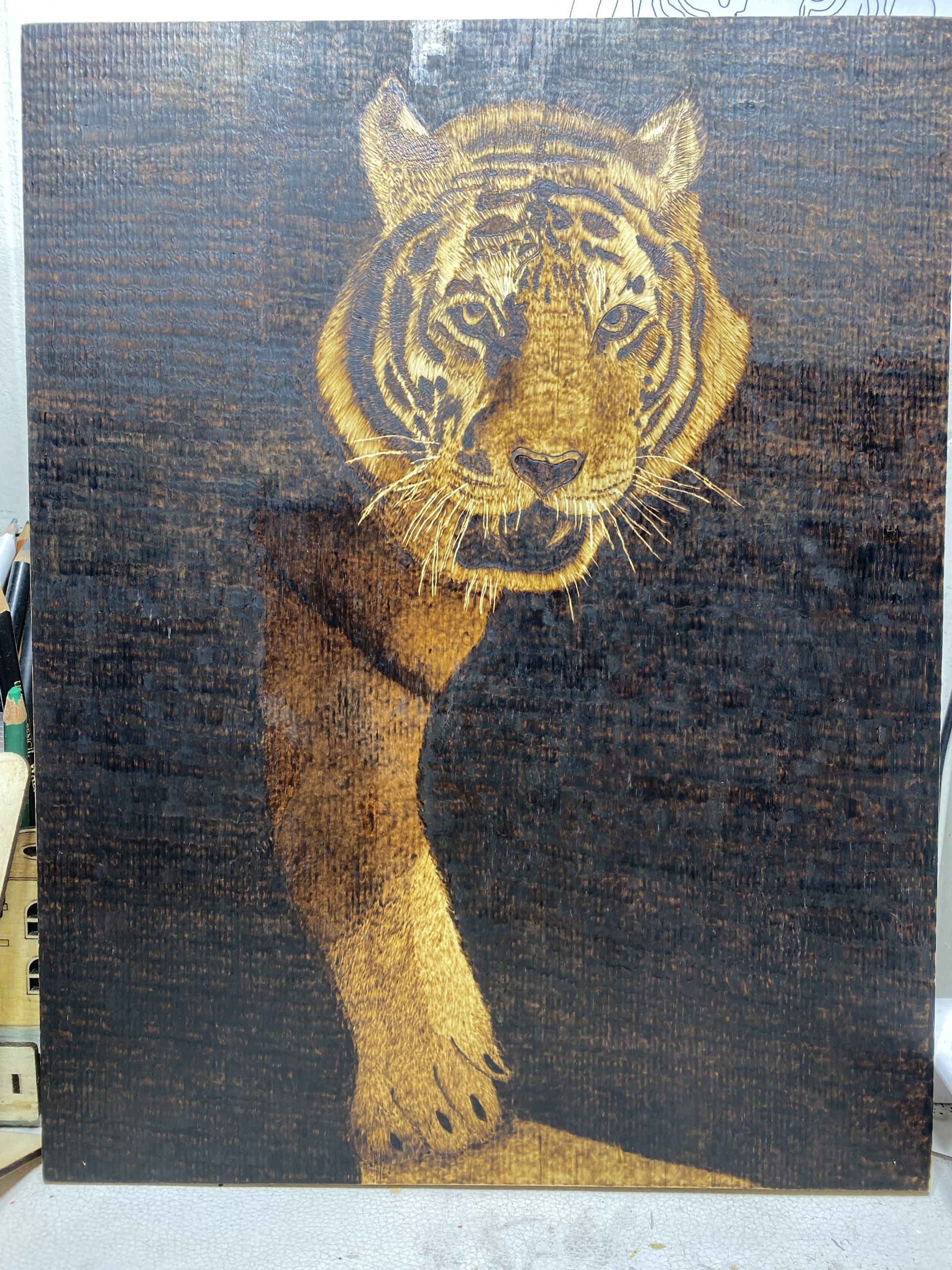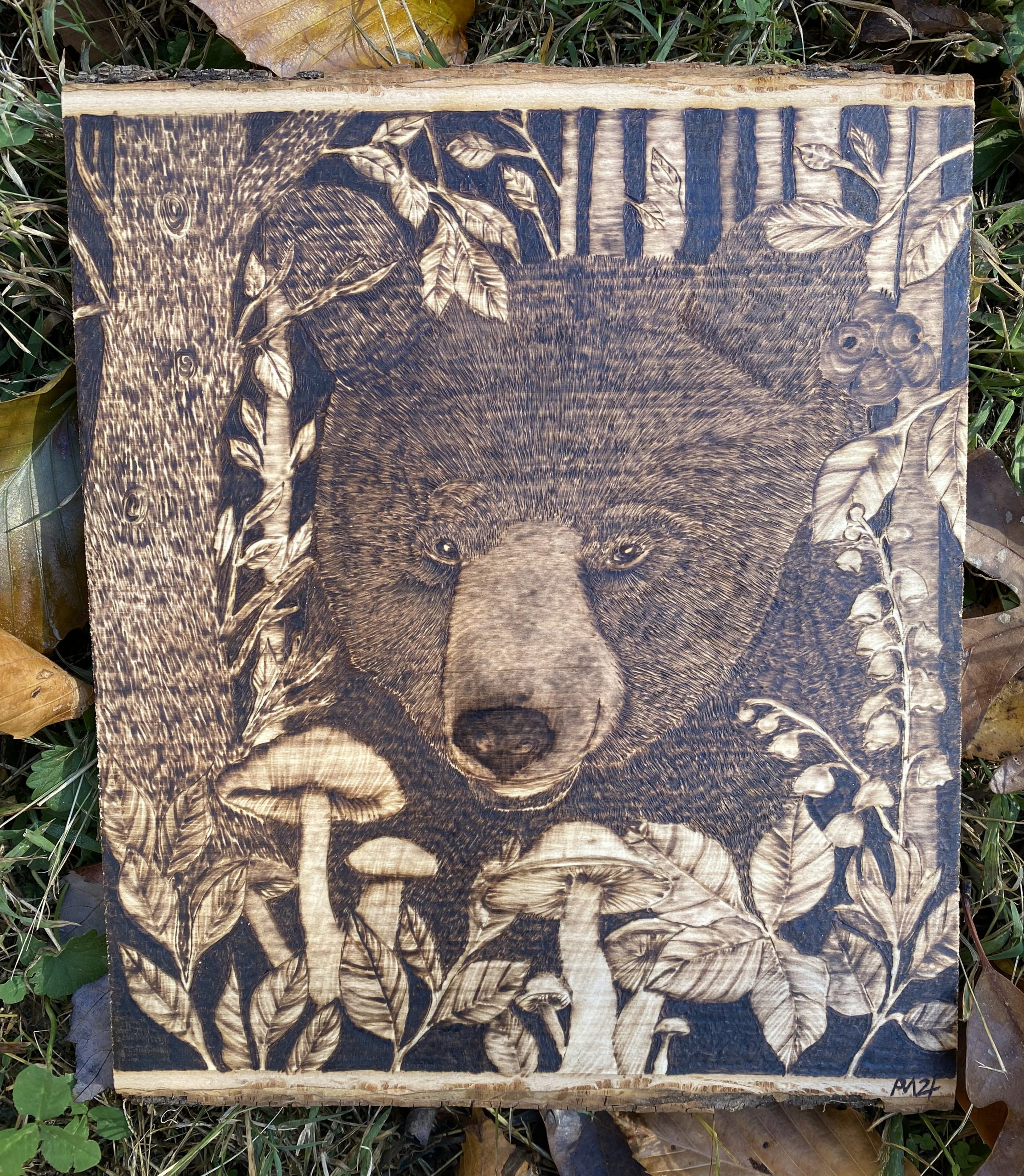 Woodburning is a slow process. Each line is burned by hand, creating permanent marks that can’t be undone or erased.